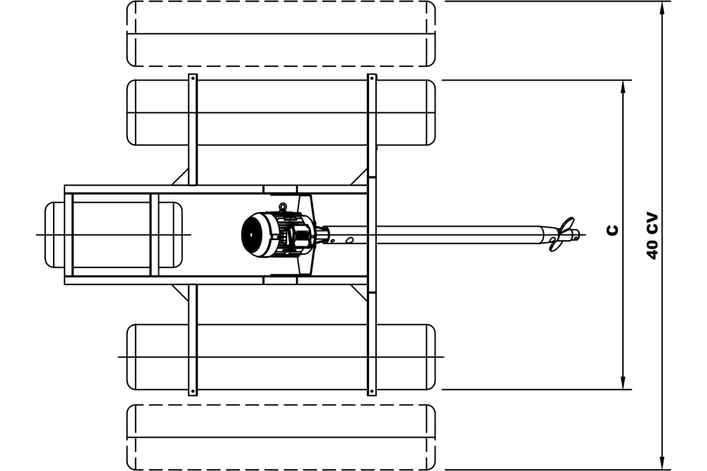 Um criterioso estudo da disposição das unidades no tanque ou lagoa é muito importante e tem o objetivo de criar uma vigorosa circulação do efluente. Cada aerador deve captar o fluxo de outro (Flow-linkage) gerando uma corrente de circulação entre os mesmos, o que resultará na completa agitação do líquido. O fato de estar montado sobre flutuadores na superfície é uma importante vantagem, pois torna extremamente fácil qualquer alteração de posicionamento.