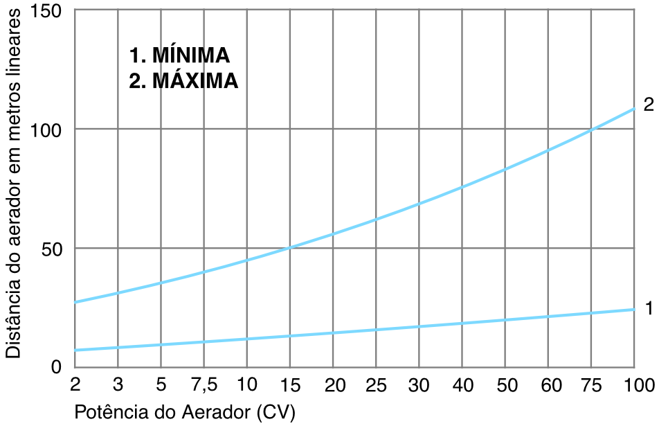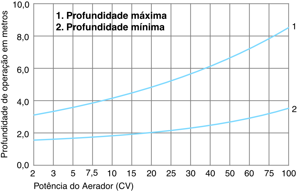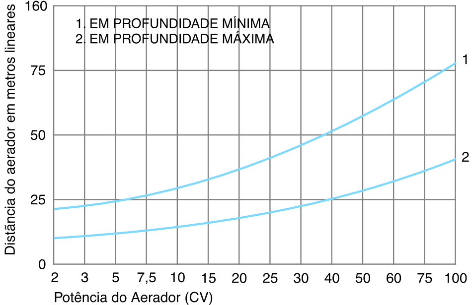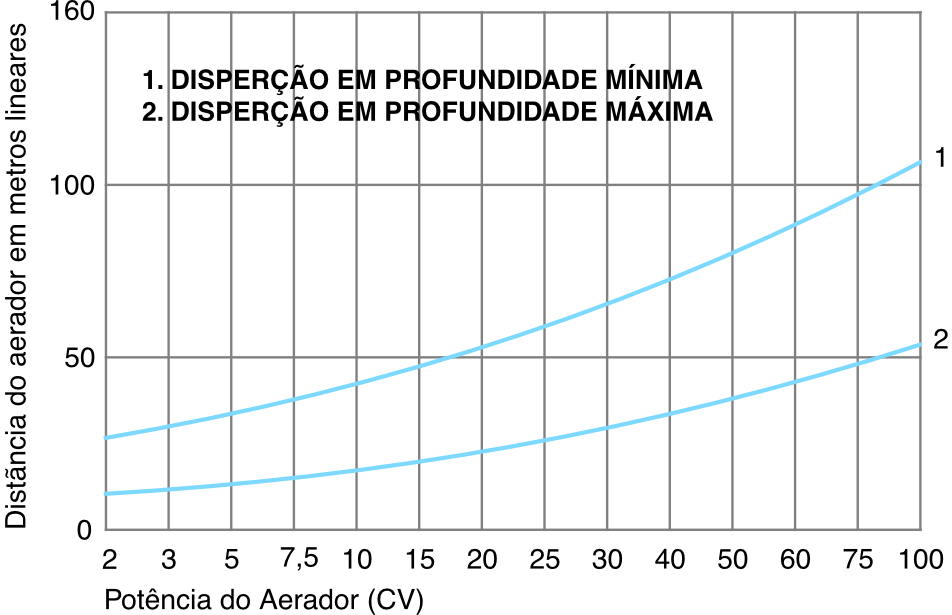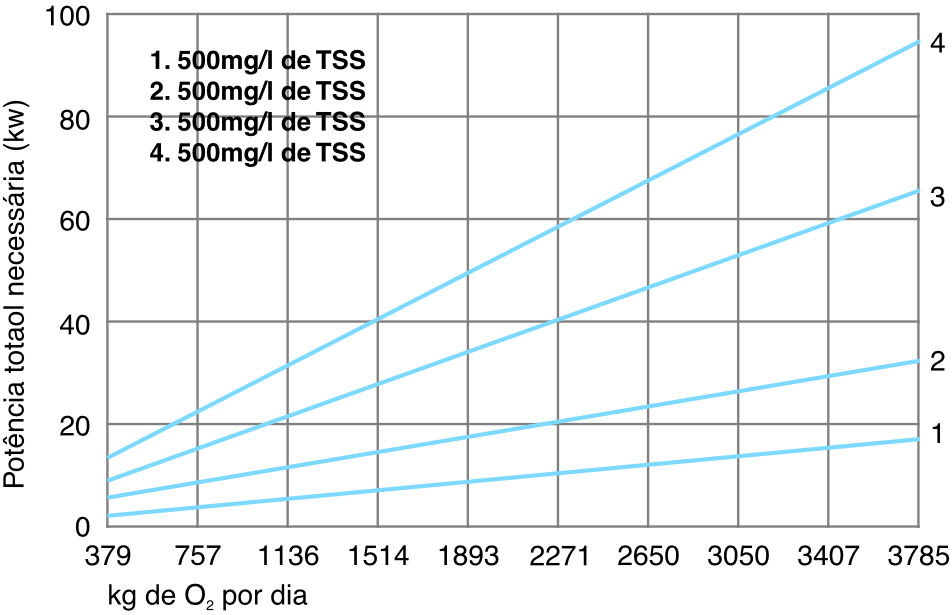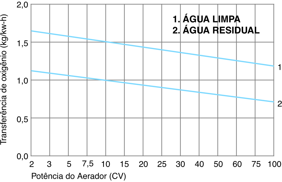 Os gráficos ilustram características essenciais necessárias ao dimensionamento do sistema. Muitas variáveis influenciam na transferência de oxigênio e na eficiência final do processo. Por isso recomendamos sempre a consulta ao nosso Departamento de Engenharia para correta especificação das unidades. Teremos o maior prazer em colaborar com o cliente ou seus consultores no projeto do sistema.