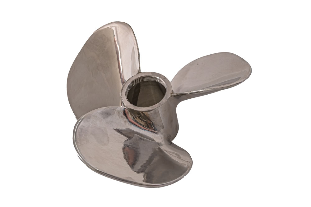 A hélice apresenta geometria e acabamento perfeitos, conferindo eficiência e total ausência de cavitação.